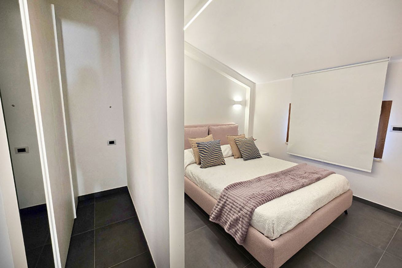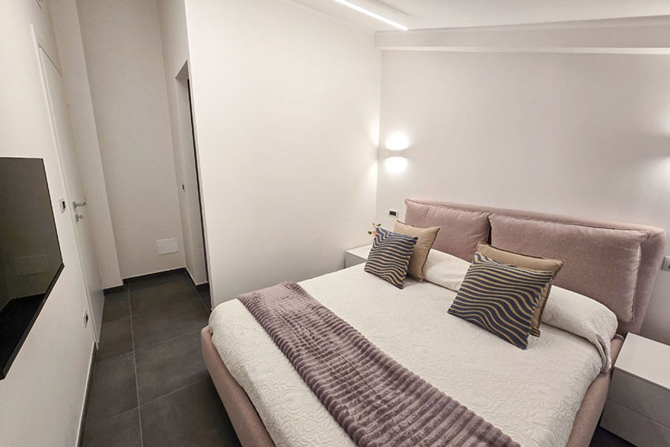 Il trilocale Afrodite propone arredi curati nei minimi dettagli, con finiture di alto livello, rispettando la cromaticità degli ambienti e lo stile ricercato.