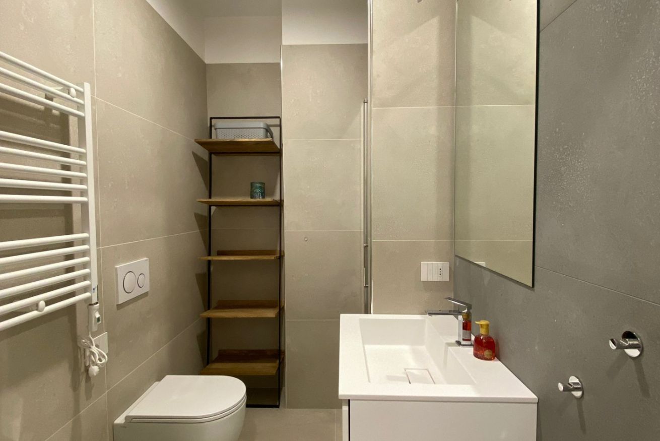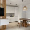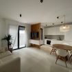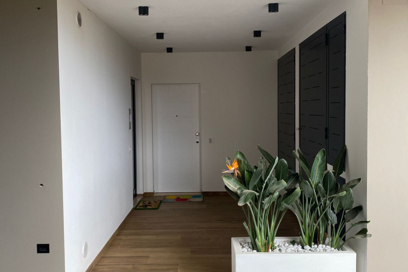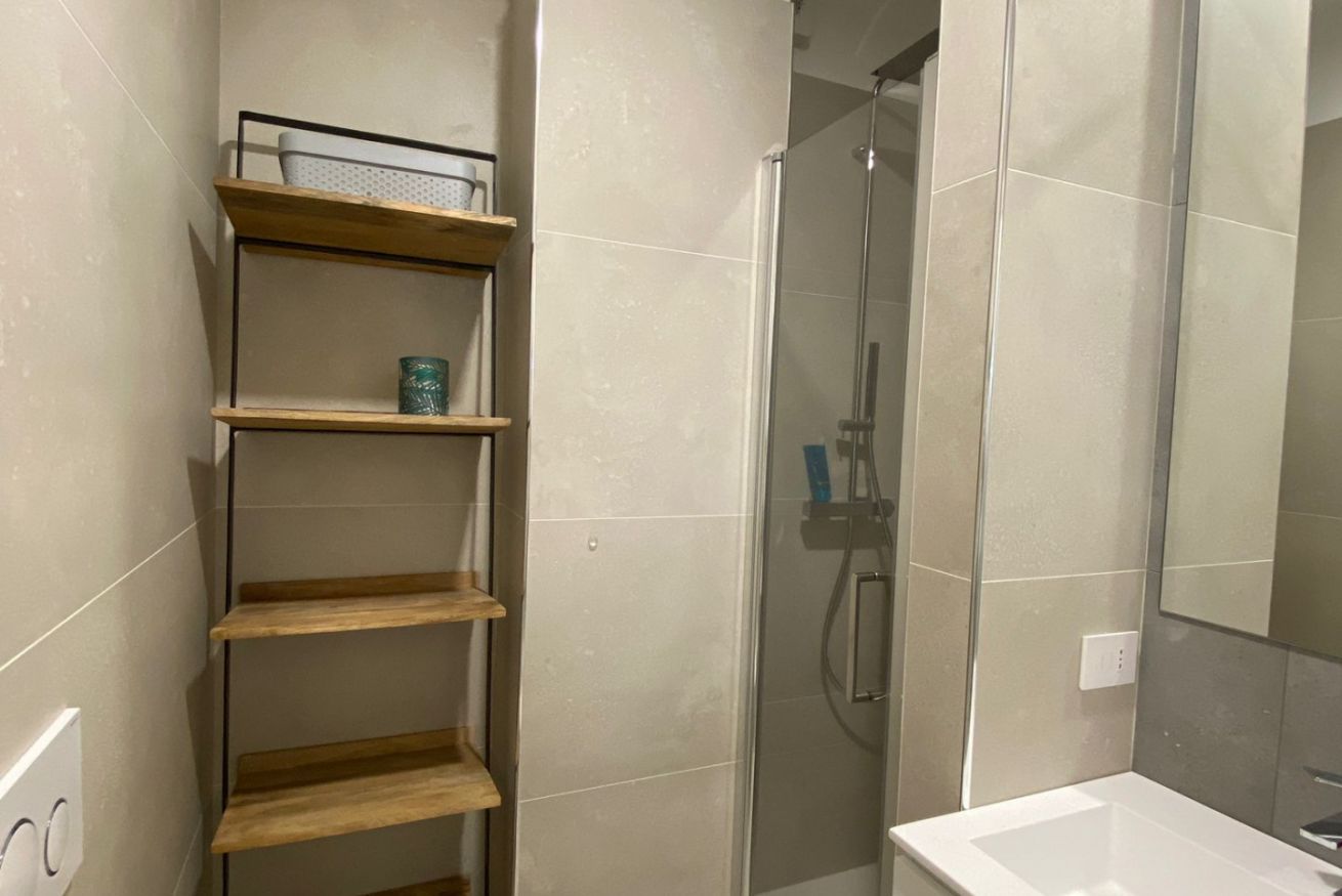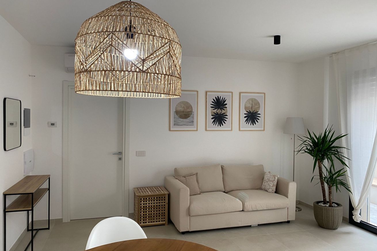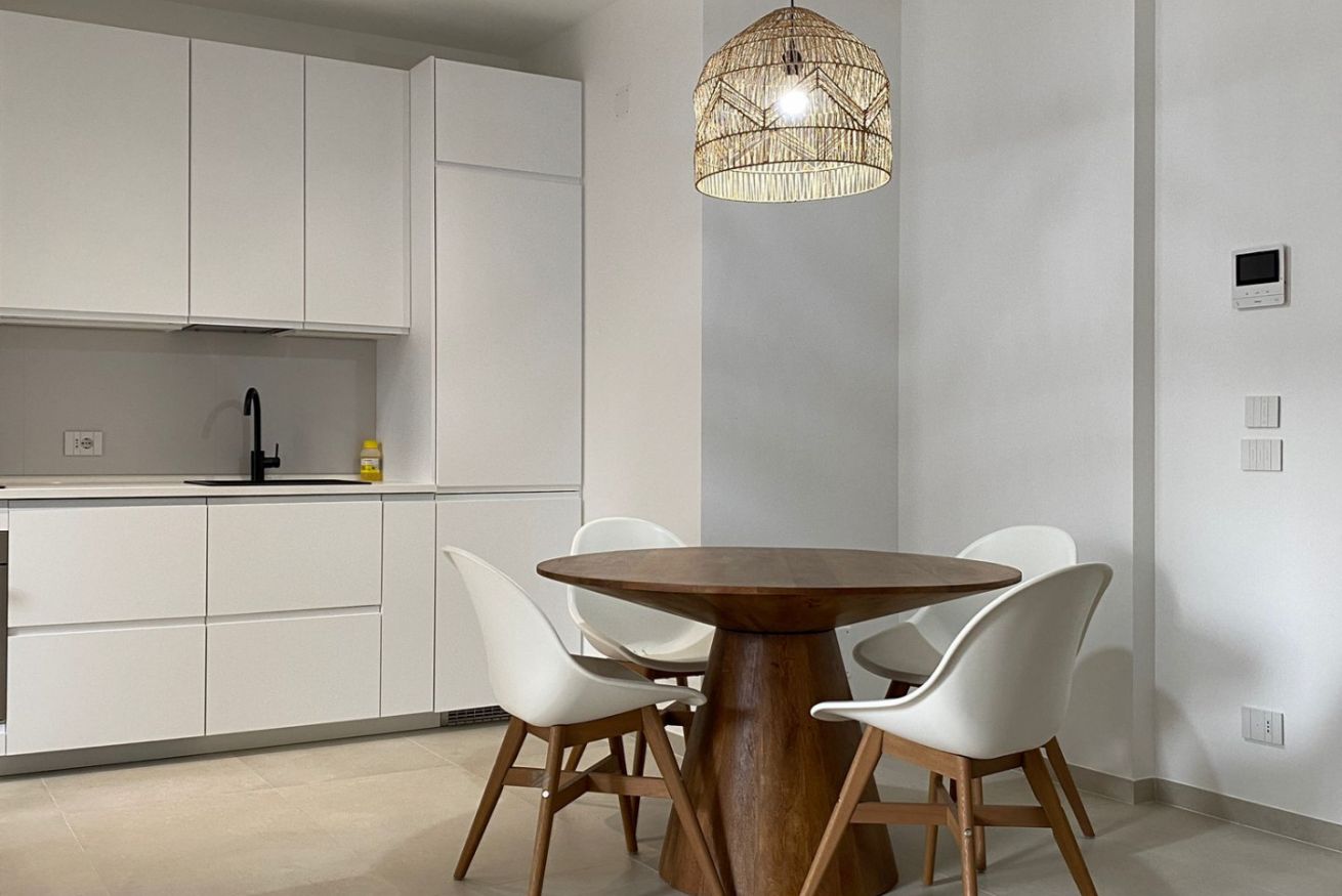 La cucina è accessoriata e corredata di ogni tipo d'utensile, piano induzione, lavastoviglie, forno, macchina caffè e frigorifero. Dall'area living si accede ad un disimpegno ed alla zona notte composta da una stanza matrimoniale ed al bagno corredato di sanitari, lavabo, mobile bagno e box doccia.