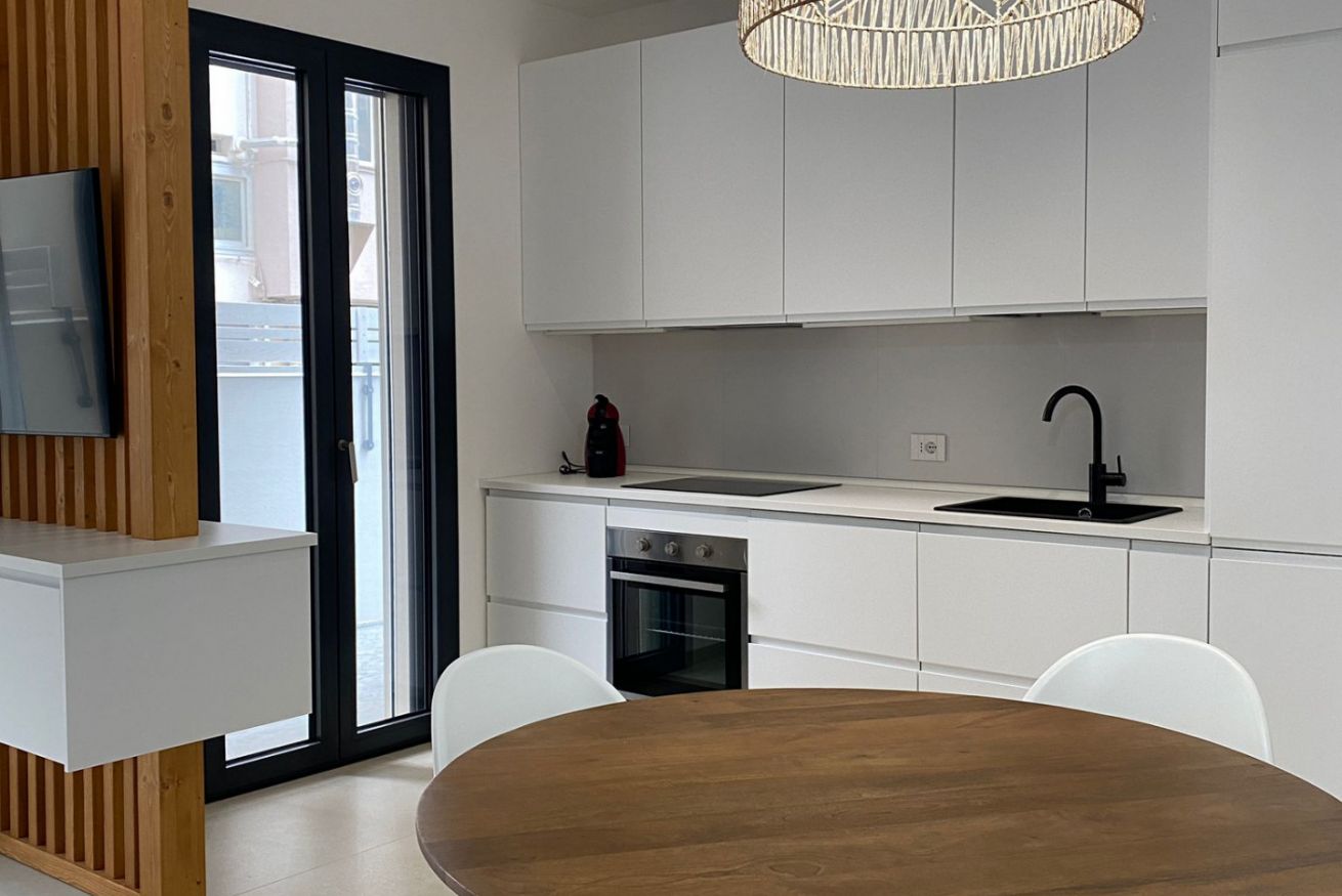 L’unità immobiliare propone arredi curati nei minimi dettagli, rispettando la cromaticità degli ambienti e lo stile ricercato e si compone di un’area living arredata con divano letto matrimoniale, tavolo da pranzo, smart tv ed un’accurata illuminazione.