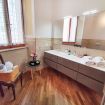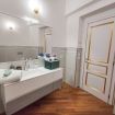 L’altra scala raggiunge il piano superiore dove si trovano un ampio e comodo salone con divano e poltrone, pianoforte ed angolo ristoro, oltre a due ampie e confortevoli camere da letto matrimoniali con bagno ensuite dotate di doppia doccia con cromoterapia, di cui una con terrazzino con zona solarium e fontanella storica, dove rilassarsi nel contemplare lo splendido panorama con a nord la catena dei Monti della Laga, dei Sibillini e il Monte dell' Ascensione, ad est la Torre del Palazzo comunale, l'imponente cupola della Collegiata, i campanili della chiesa del Suffragio e dell'Addolorata e la chiesa abbaziale trecentesca Santa Maria della Rocca che se ne sta adagiata sulla cima di una rupe su due splendide vallate.